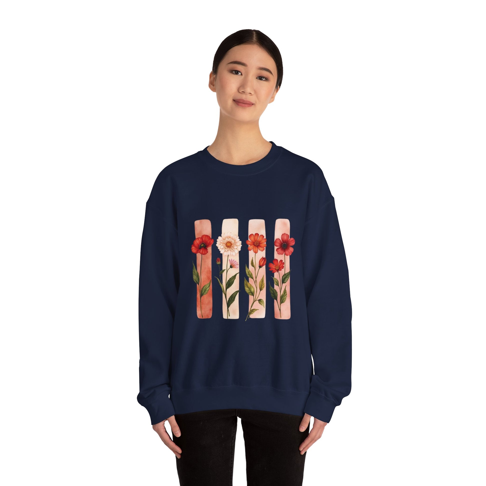 Vintage Floral Strip Sweatshirt | Botanical Flower Crewneck | Minimal Aesthetic Pullover | Cozy Nature Inspired Gift